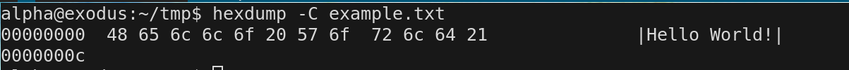 We can use the hexdump utitlity to see exactly what numeric value is stored in each byte, for every bytes that stored in the file.