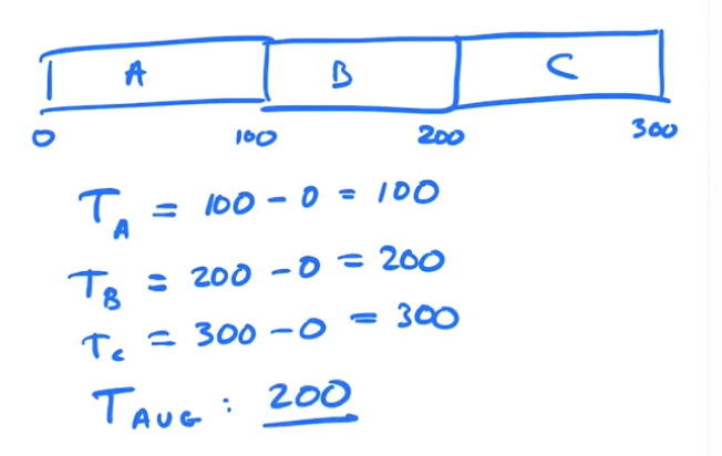 If each takes 100 time units to complete and we run each to completion.