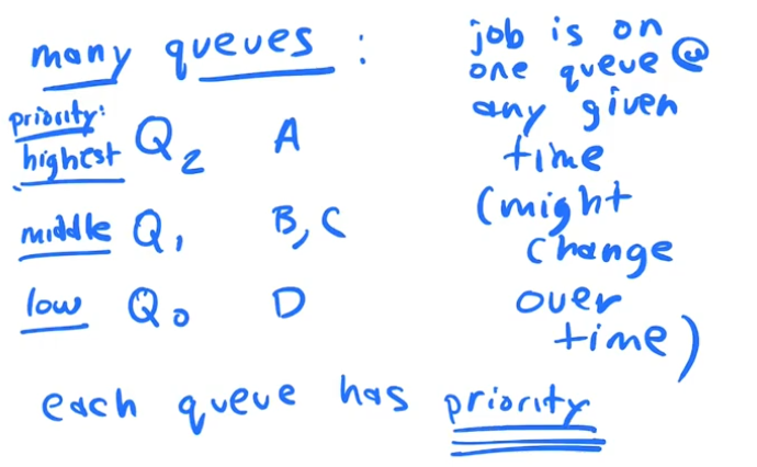 We call our real scheduler a "MULTI LEVEL FEEDBACK QUEUE". It is a general principal approach to building an OS Scheduler.