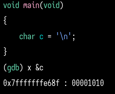 C evaluates the following symbol '\n' as the number 10 (0xA). The '\' is an escape character. When the c compiler encounters the escape character in a string or delimted by single quotes, it does not evaluate it as a plain text backslash, it evaluates the \ and the next character as a control sequence. If you want to insert an actual backslash you would type two \\
