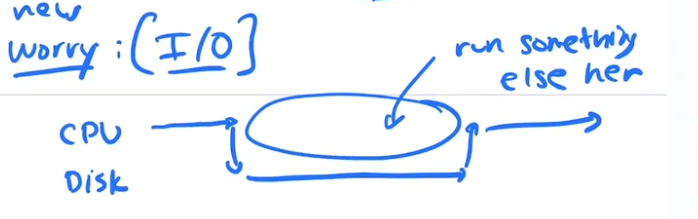 If you imagine process A running on the cpu, it calls a trap to read from disk. considering a cpu cycle is .3 nano seconds and reading from disk is 10 m/s, if the cpu did not move the process A into a BLOCKED state, it could potentially waste thousands of cpu cycles. CPU utilization must be optimized. We need to keep process A out of the CUE of READY processes cue until the i/o is done.