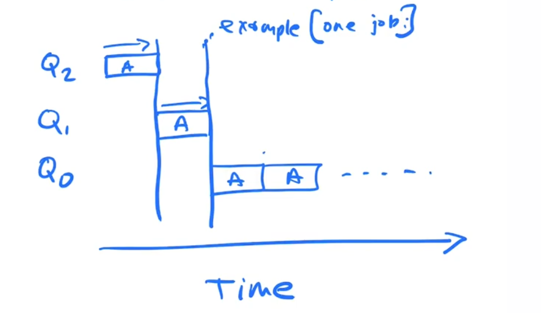 Given Job A and Q's Q2, Q1, Q0 where highest priority is highest Q number