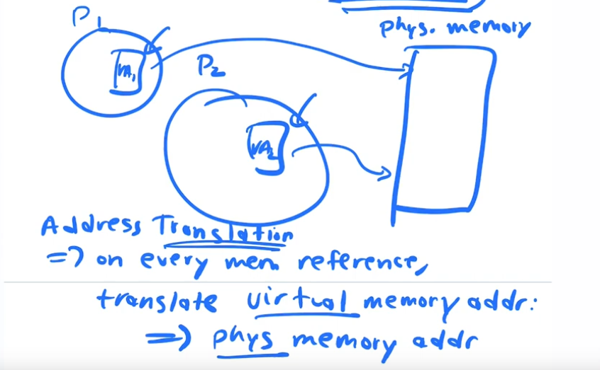 On every single memory access a translation occurs from virtual memory of a process to the physical memory