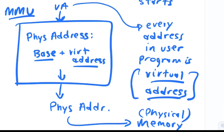 In the Base and Bound Mechanisme to get the physical address, the mmu takes the Address in the Base register, which is a physical address and adds the virtual address to it.