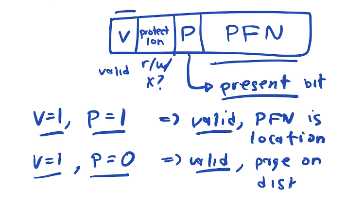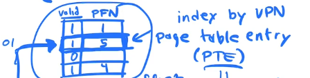 Every (PAGE TABLE ENTRY) in the array stores the PFN (PHYSICAL FRAME NUMBER) that a given VPN (VIRUTAL PAGE NUMBER) is mapped to. But we also store status bits in that entry that specify if the pages is VALID for access