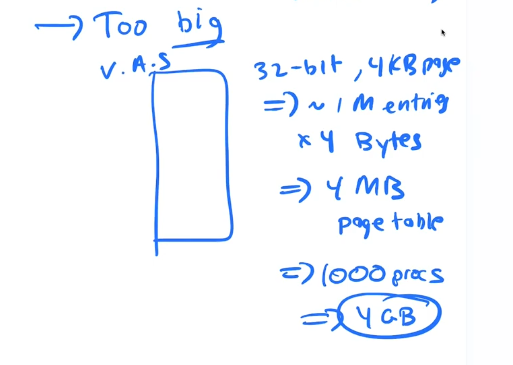 A process may be only using 3 or 4 pages of it's address space, yet it still has a PAGE TABbLE with millions of entries.